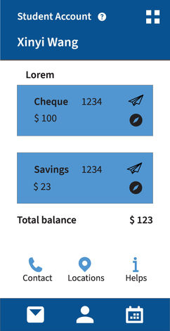 Unlike the first version, I prioritized the account information and put the main navigation at the end of the screen to focus on the user.